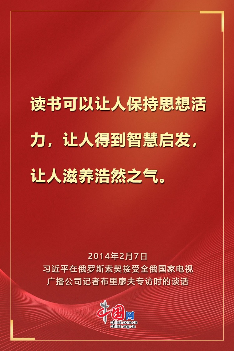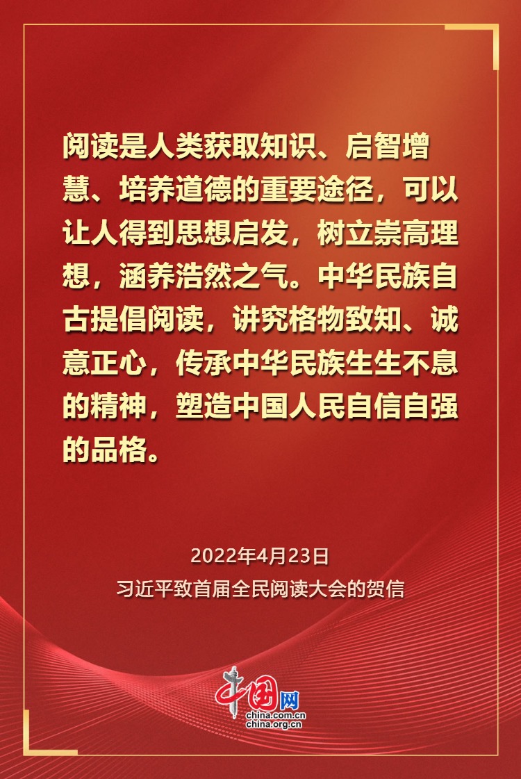 阅读启智增慧,书香涵养正气。党的十八大以来,习近平总书记发表一系列重要讲话,提出一系列明确要求,引领全社会形成爱读书、读好书、善读书的新风尚。值此北京即将迎来首个“全民阅读活动周”之际,让我们重温总书记谆谆教诲,践行读书之道,共筑学习型社会、学习型大国,让书香浸润华夏。