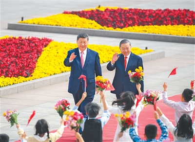 双方要同心协力,携手同行现代化道路。要加快发展战略对接,优先推进基础设施互联互通。要加强人工智能、半导体、物联网等新兴领域合作。中方欢迎更多越南优质产品进入中国市场。双方要继续加强旅游、文化、媒体、教育、卫生、体育等友好交流合作,促进两国人民相知相亲。我愿同你一道宣布启动2026—2027年“中越旅游合作年”。
